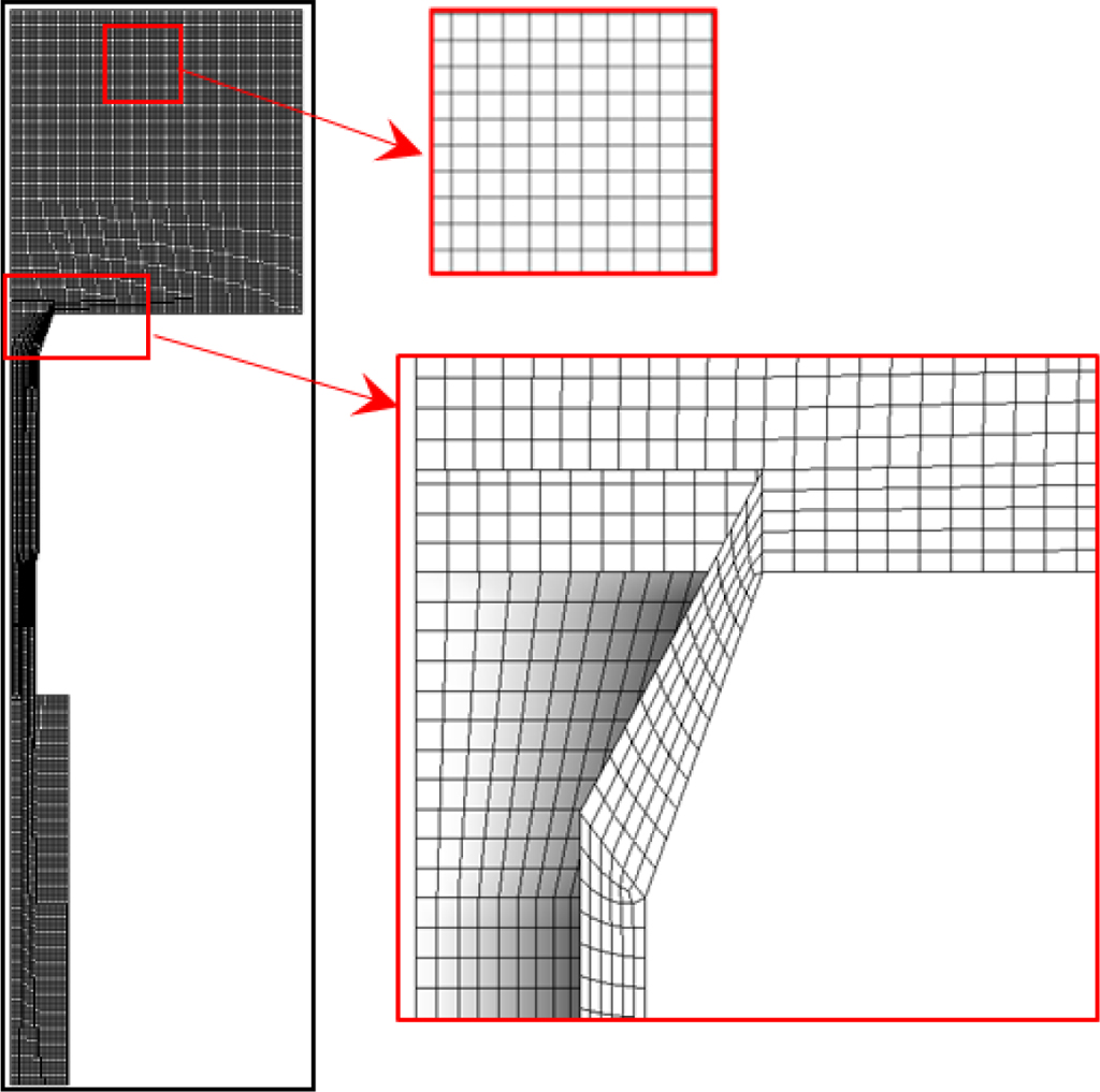 격자 생성 및 경계조건. 해석에 사용된 격자 형상이 Figure 4에 나타나