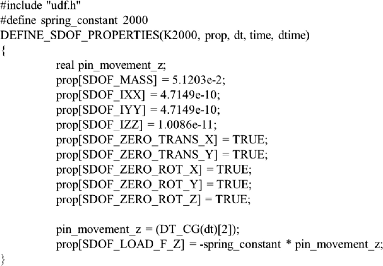 스프링상수에 비례하여 가변벤트 벨브가 반발력을 갖도록 구현했다. Figure 8에 본 연구에서 사용한 UDF가 나타나있다. 스프링에 의한 반발력은 가변벤트 구조물이 재료의