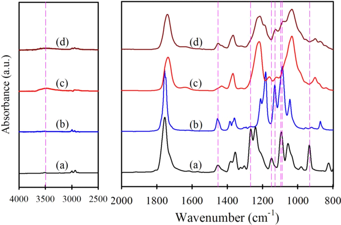 0.32 몰이 그래프트되어 CA 주사슬의 최대 64%의 히드록시기에 PLA가 그래프팅되었음을 알 수 있으며, 이에 따라 Figure 1(d)의