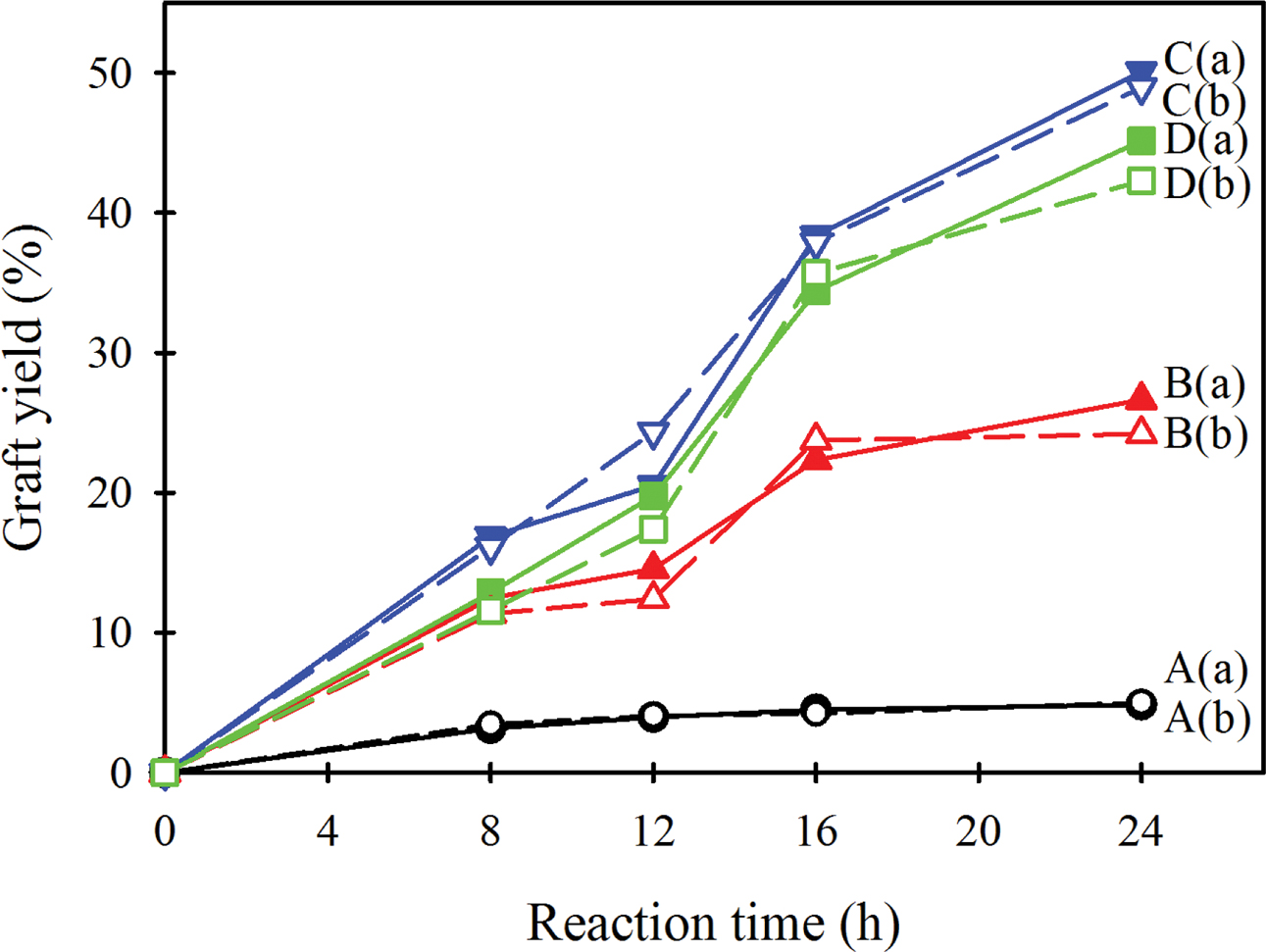 CA and reaction conditions. Graft yields of the copolymers were determined by