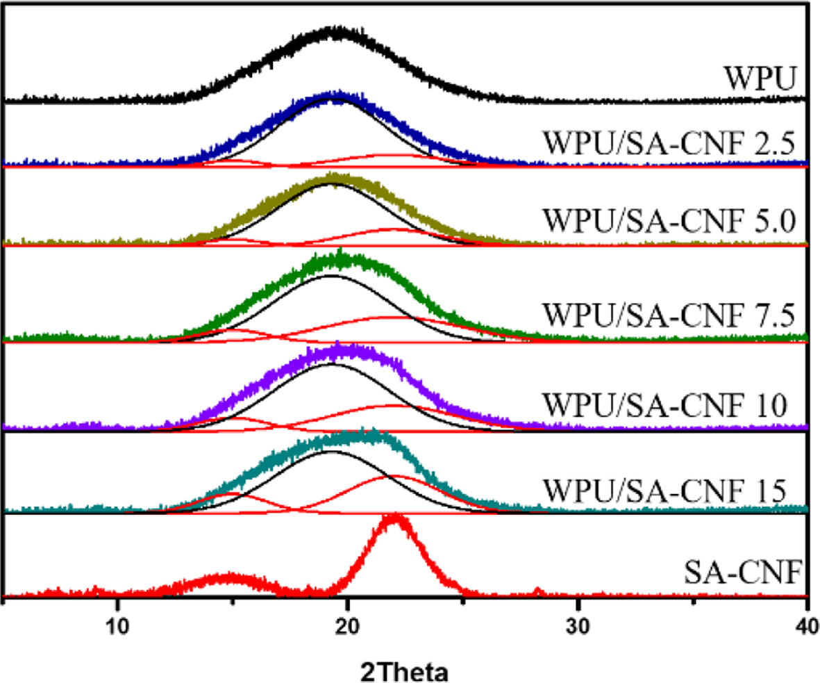 Figure 4 XRD deconvolution data of WPU/SA-CNF composite films. |