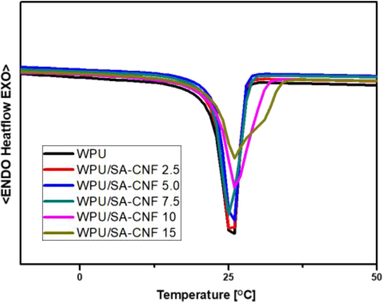 Figure 6 DSC data of WPU/SA-CNF composite films. |
