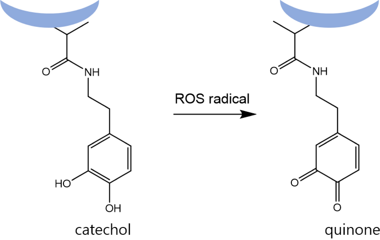 Figure 1 Antioxidant mechanism of dopamine unit through oxidation of catechol into ortho-quinone. |