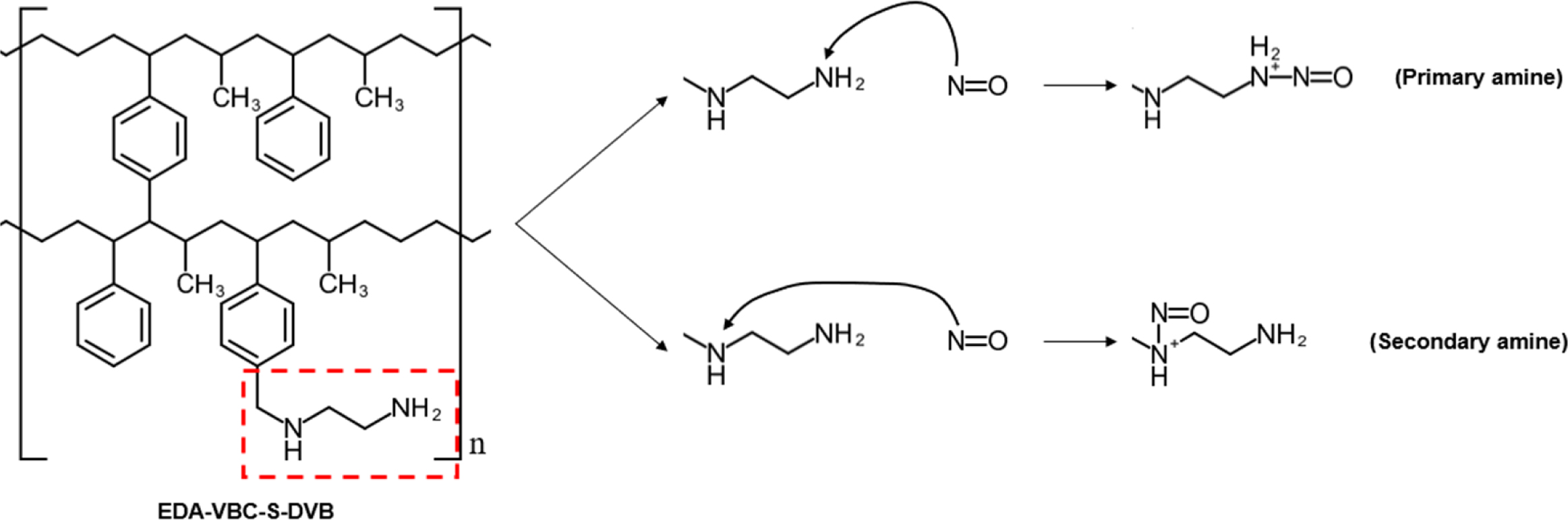 Figure 3 Adsorption mechanism of EDA-VBC-S-DVB for NO gas. |