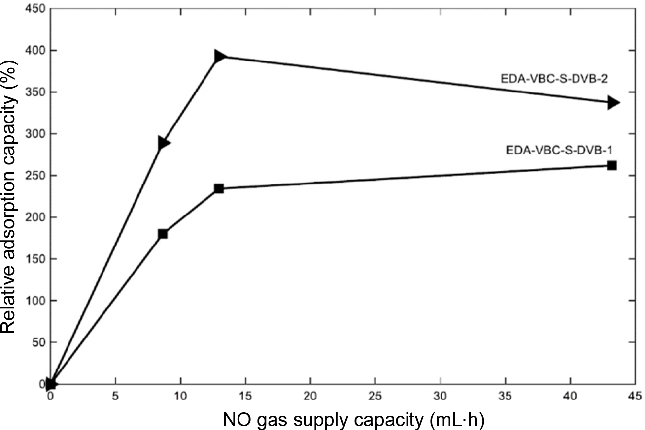 Figure 8 Relative adsorption capacity of EDA-VBC-S-DVB depending on the NO gas supply capacity. |