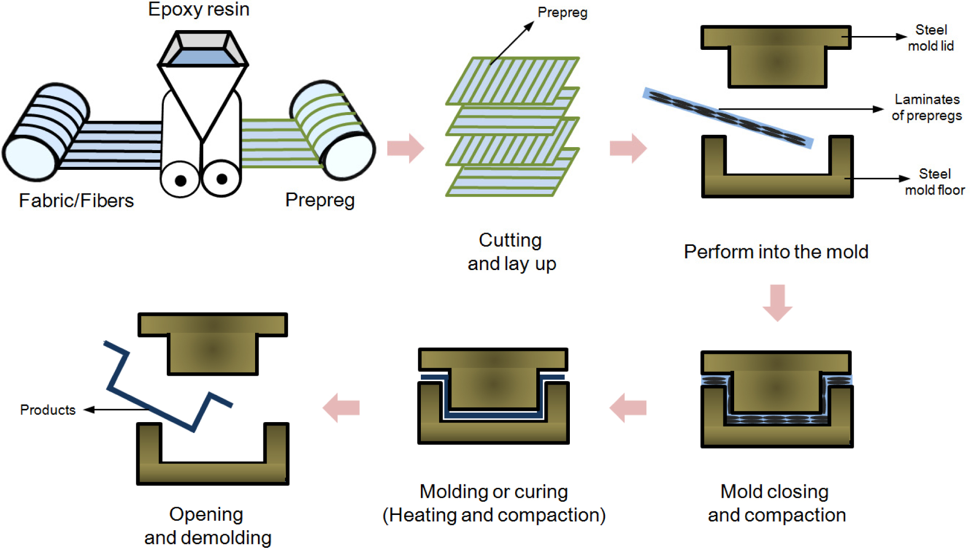 bag molding), 오토클레이브성형(autoclave molding) 등이 있으며, 이 중 압축성형 공정이 비교적 용이하고, 복합재료의 보이드를
