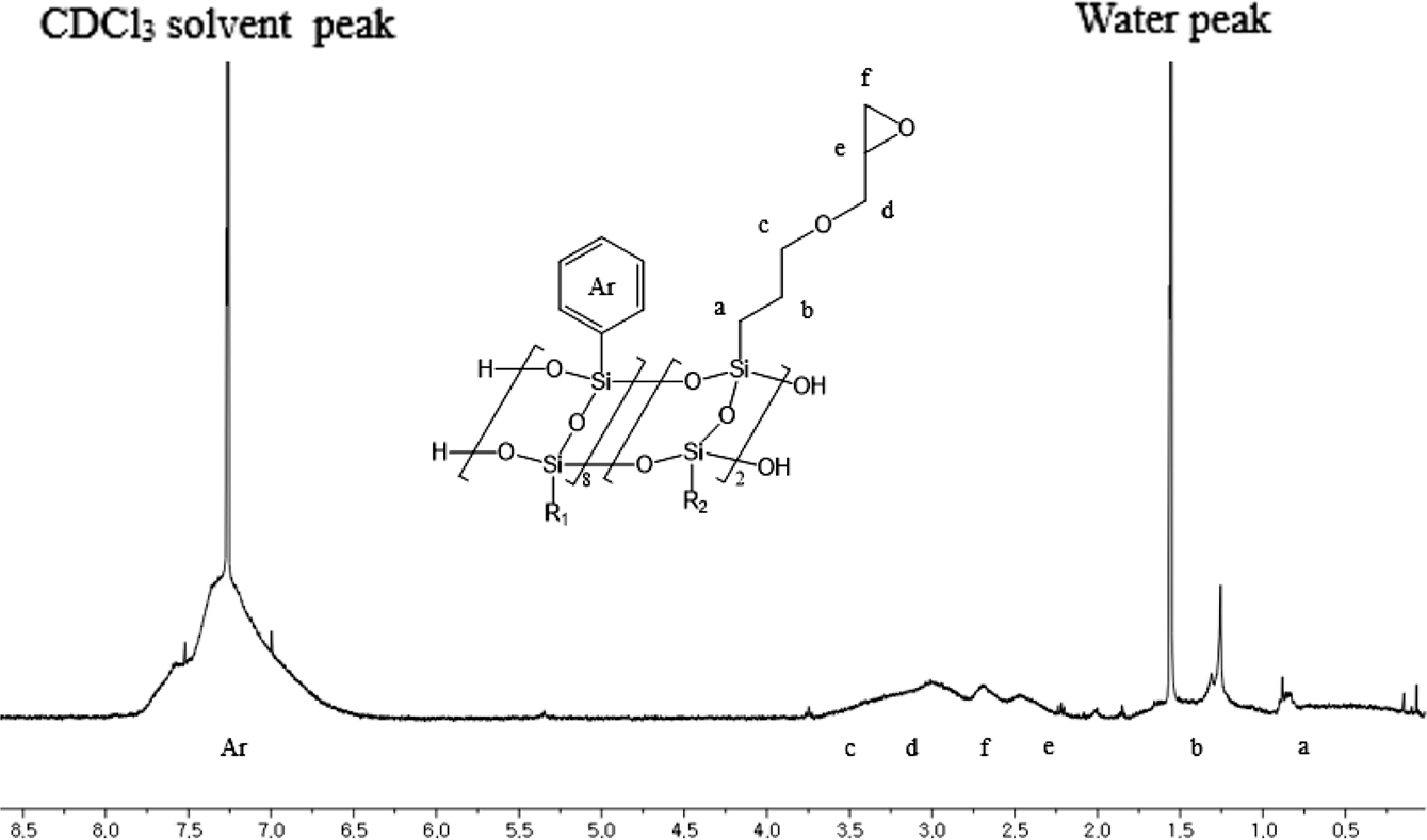 Figure 1 1H NMR spectrum of ladder-like poly(phenyl-co-glycidoxypropyl) silsesquioxane (LPS). |