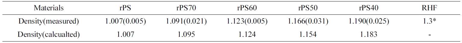 Density of Rice Husk Flour Reinforced Recycled Polystyrene Composites