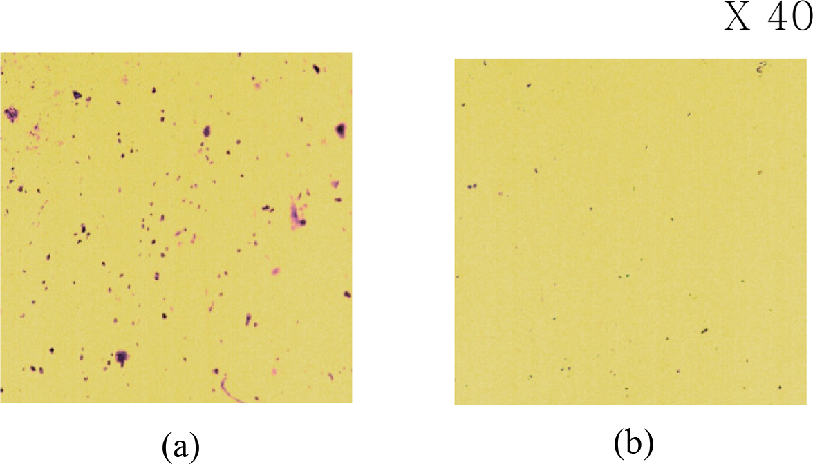 식품 포장재로 사용되는 PP/N6 필름은 투기 투습 특성과 함께 광학적 특성 또한 고려되어져야 한다. PP에 나노 셀룰로오스 섬유를 직접 혼합하는 경우 나노 셀룰로오스 섬유 표면의 하이드록실기에 따른 섬유 상호간의 응집력에 의하여 Figure 6(a)에서 보는 바와 같이 나노 셀룰로오스 섬유가 서로 응집되어 분산 특성이 좋지 않음을 보인다. 이를 해결하기 위하여 Figure 7에서 보는 바와 같이 상대적으로 점도가 낮은 PP-g-MA에 나노 셀룰로오스를 먼저 혼합하여 마스터 칩을 제조한 후 이를 다시 PP와 혼합하면 Figure 6(b)에서 보는 바와 같이 혼합 특성이 현저히 좋아짐을 알 수 있다. 혼합 특성 개선과 함께 이러한 가공 방법은 PP-g-MA 수지의 무수산기와 나노 셀룰로오스 섬유 표면의 하이드록실기 결합을 보다 더 잘 유발시킬 수 있을 것으로 판단된다.