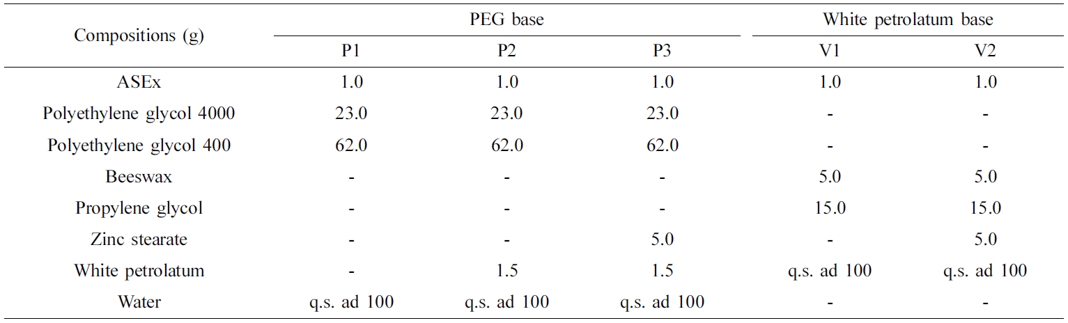 Table 3 Characteristics of ASEx-Containing Ointments |