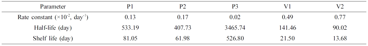 이용하였을 때, P3의 유효기간은 25 oC에서 4년을 초과하는 것으로 추정되었다. 따라서 우수한 안정성을 갖는 제품