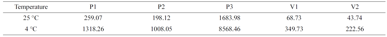 at room (25 °C) and refrigerated (4 °C) temperatures were calculated
