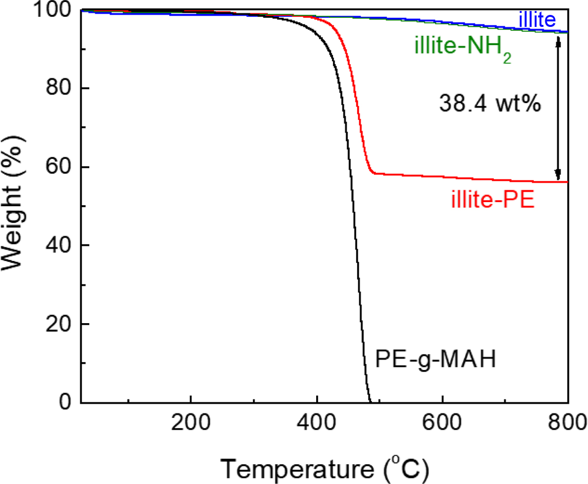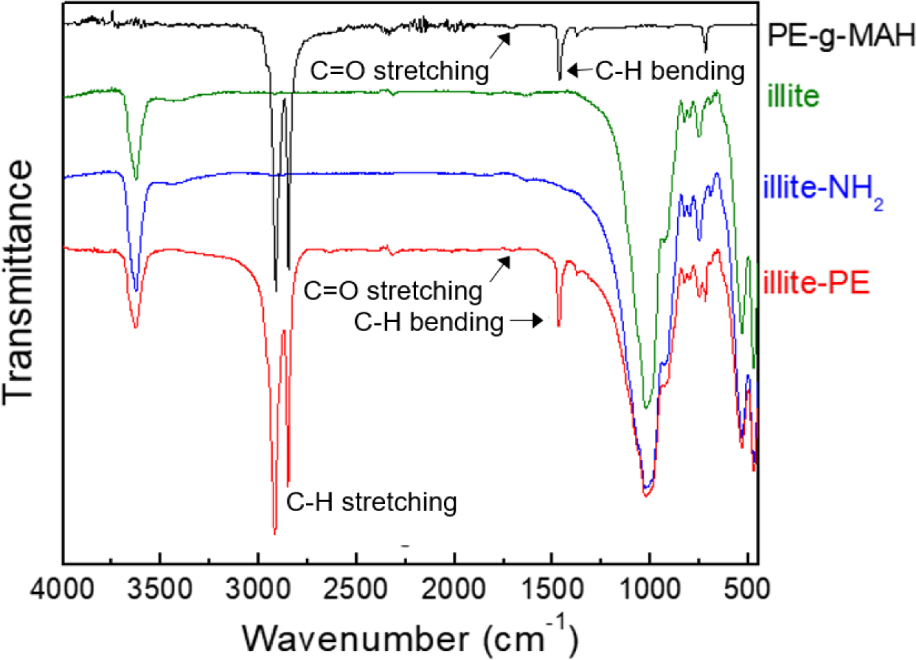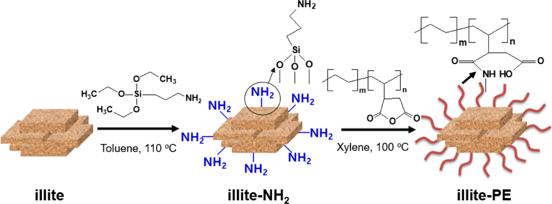 illite-NH2 with PE-graft-maleic anhydride. PE-grafted illite formed