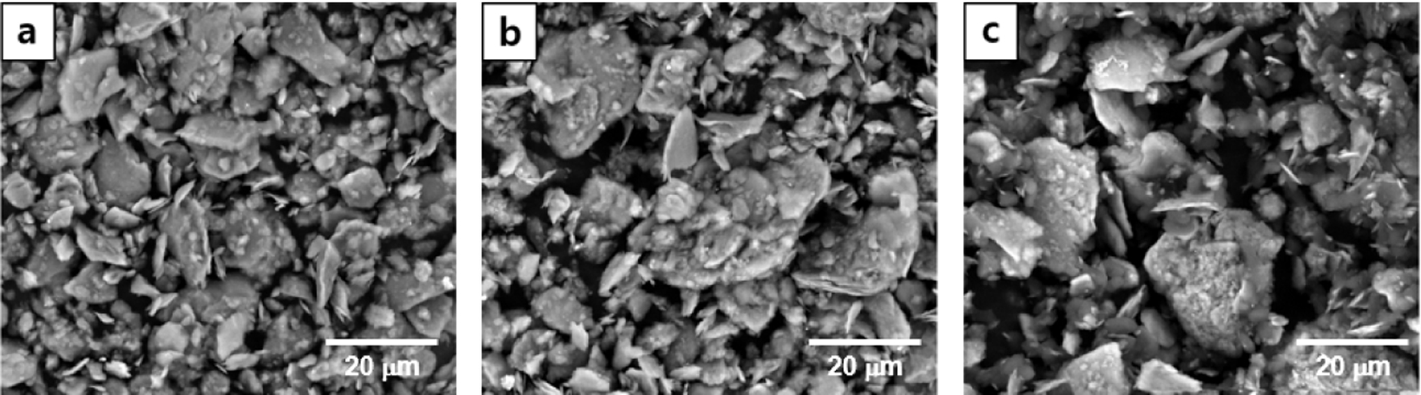 Figure 2 SEM images of (a) illite; (b) illite-NH2; (c) illite-PE. |