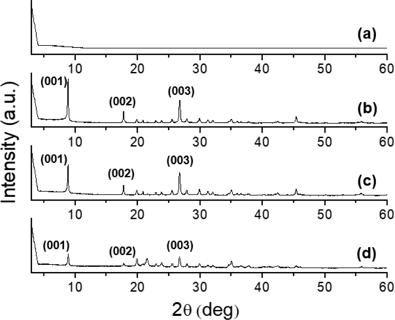 Figure 5에 나타낸 바와 같이, (001), (002), (003) 결정 피크를 포함한 일라이트의 주요 피크들이 아민 처리된