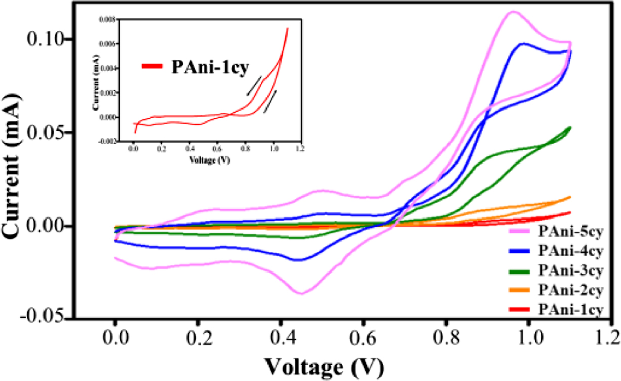 PAni-1cy indicate that deposition begins in the first cycle. Initially, aniline