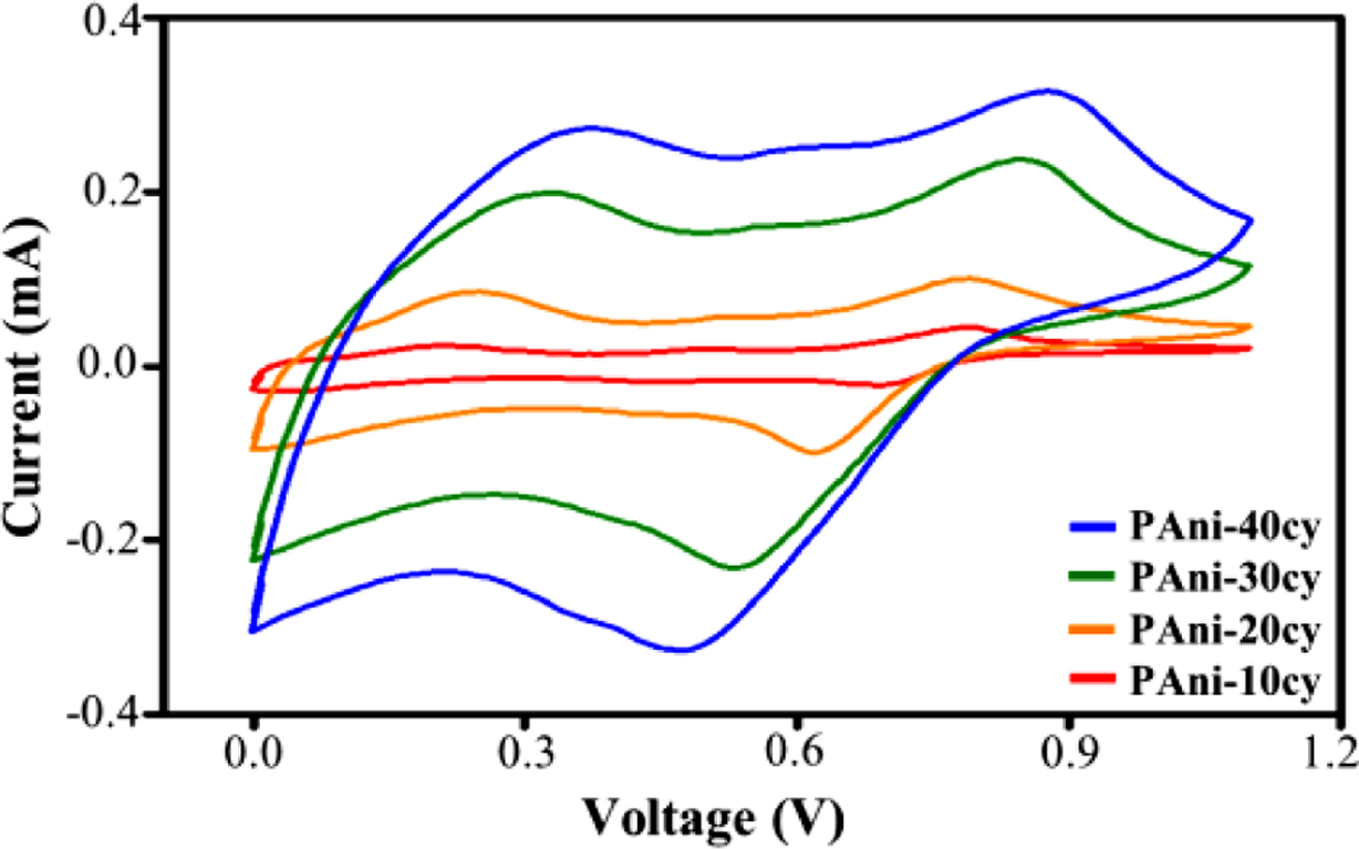 PAni-40cy, respectively. A three electrode system composed of an ITO working