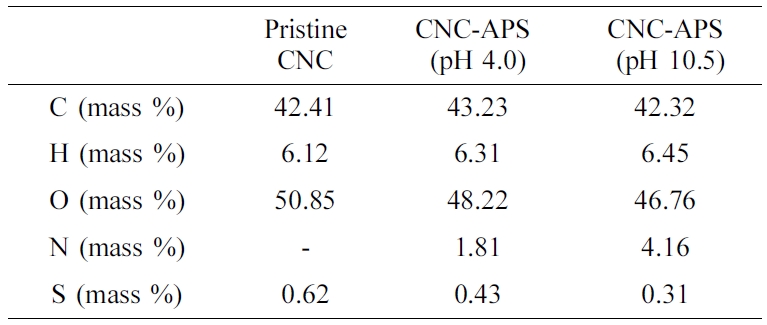 APS에 의한 CNC 표면 개질 반응.16 CNC 표면 개질 반응에 미치는 탈이온수의 pH 영향을