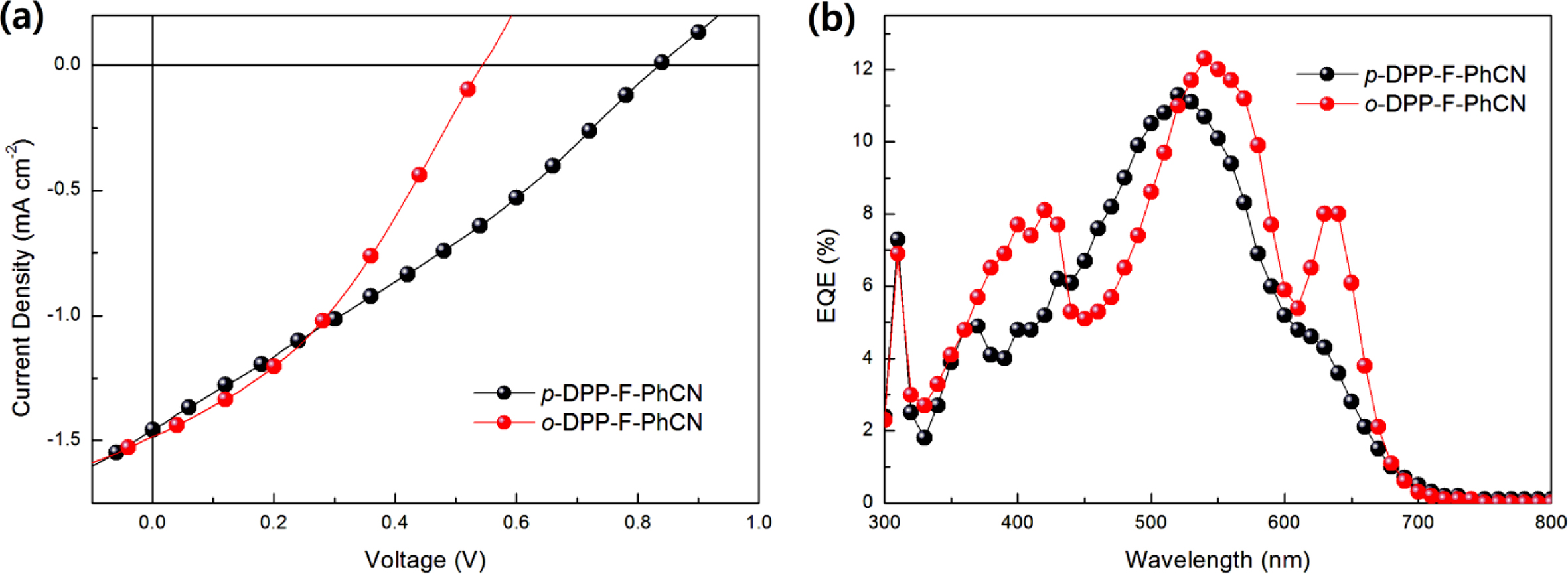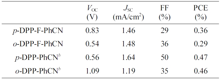 open-circuit voltage (VOC) of 0.83 V compared with that of o-DPP-F-PhCN