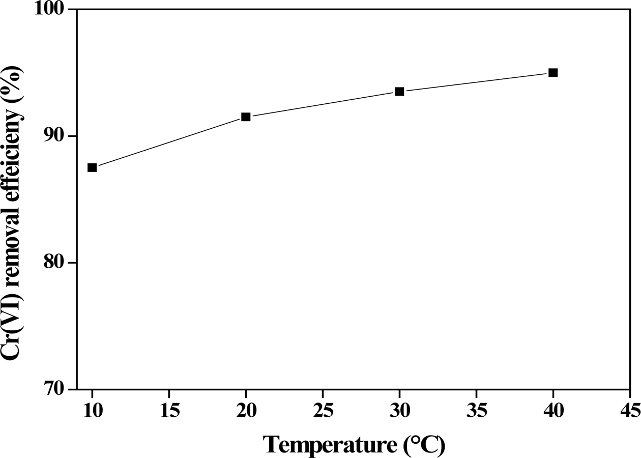 Cr(VI) adsorption onto APTF as a function of temperature.
