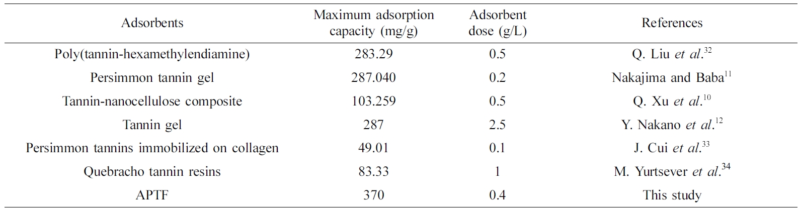 Comparison between the Adsorption Capacities of Various Tannin Adsorbents and Our “APTF” for Cr(VI) Removal.