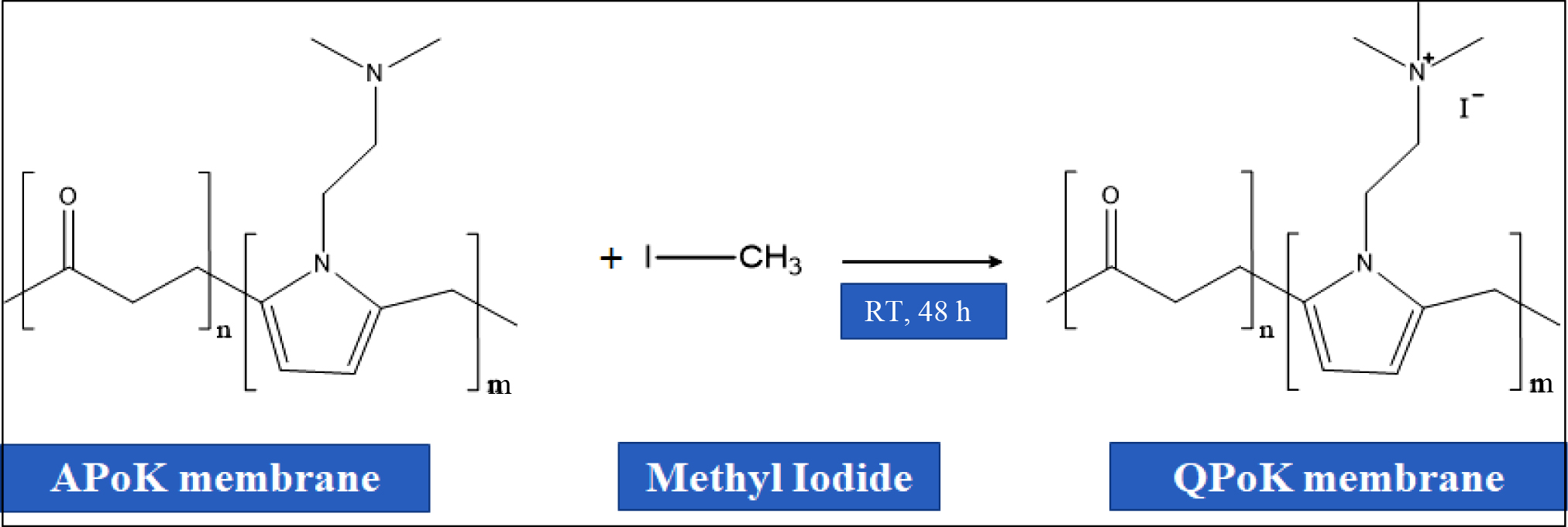 Aminated Polyketone(APoK) 막의 4차 암모늄화 반응. APoK 막의 4차 암모늄화(quaternary