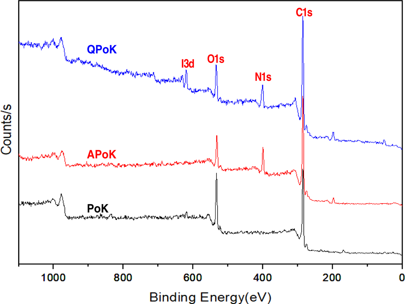 Figure 6 Typi cal X PS s pectra o f P oK, A PoK a nd Q PoK m embranes. |