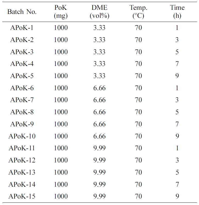 9.43 vol%, 반응시간 9시간으로 각각 확정할 수 있었다.