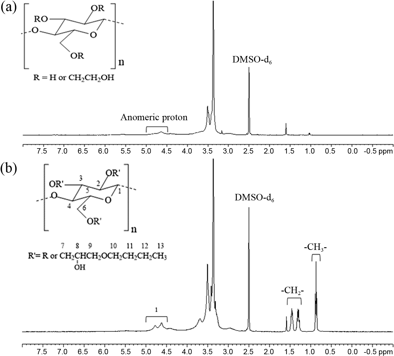 Figure 2 1H NMR specta of (a) HEC; (b) H0.58-HEC. |