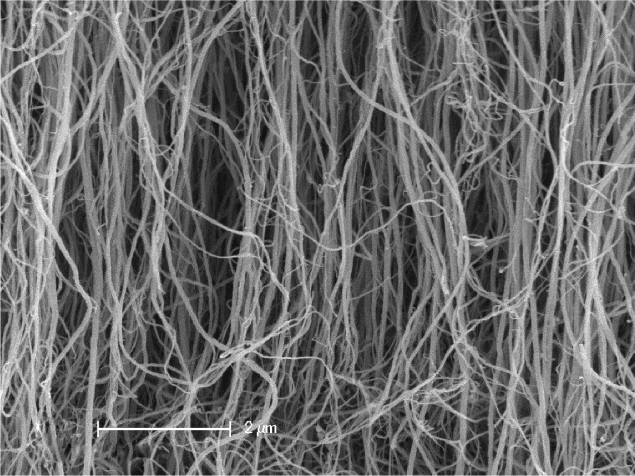 highly entangled multi-walled carbon nanotubes produced by chemical vapor deposition. |