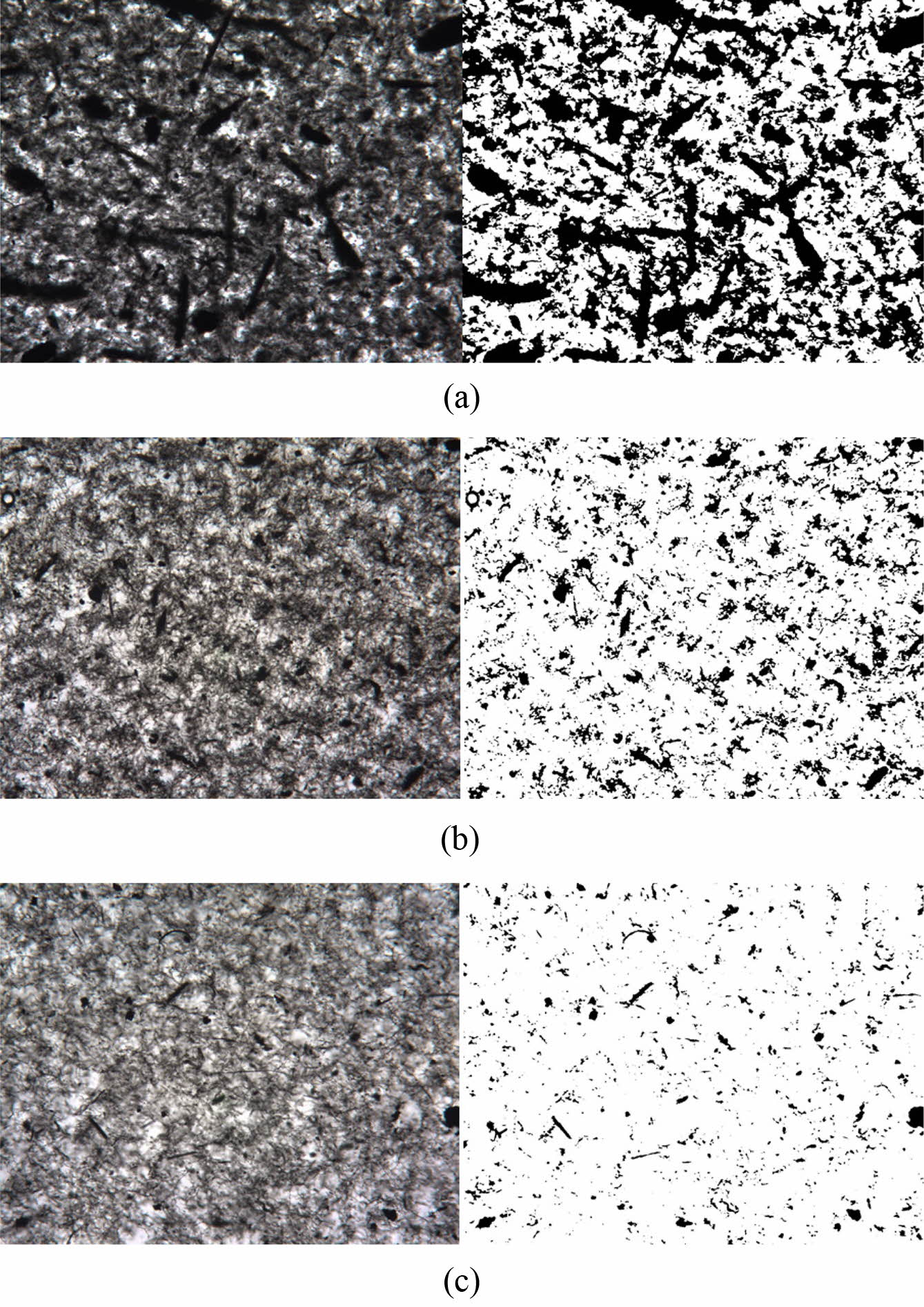 Figure 4 Optical micrographs (left column) and their binary images
