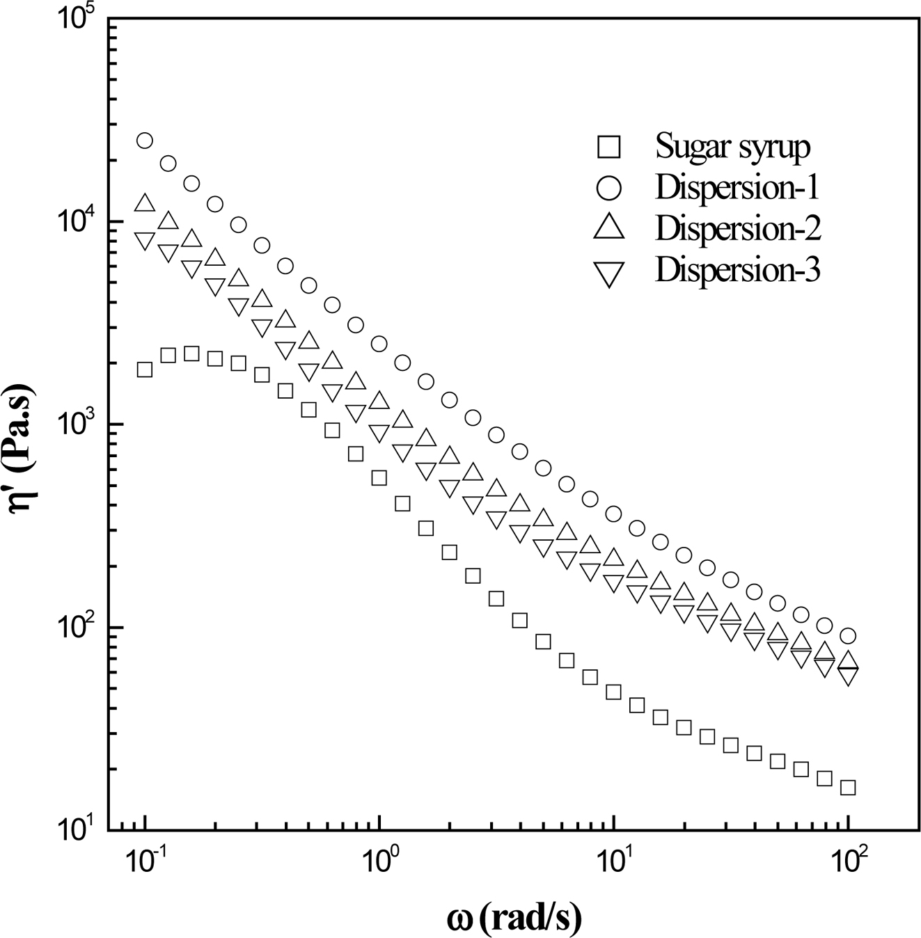 of MWNTs increased the η' of sugar syrup, exhibiting a decreased η' with an