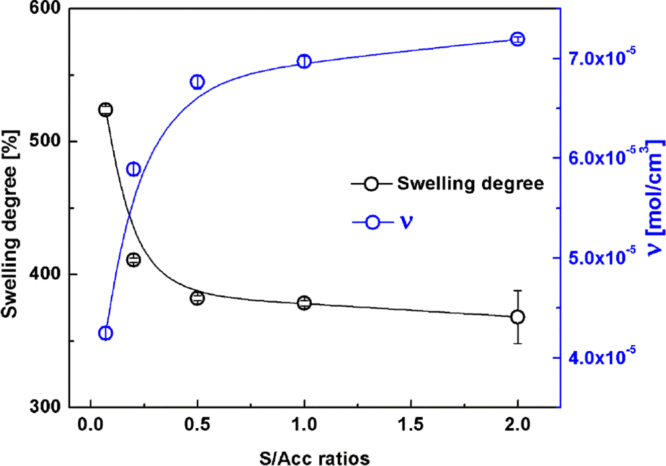 ranging from 0.07 to 2.0, on swelling and mechanical properties, and structure
