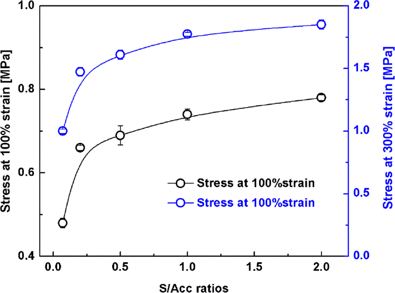 of sulfur to accelerator (S/Acc). Increasing the S/Acc ratio increased
