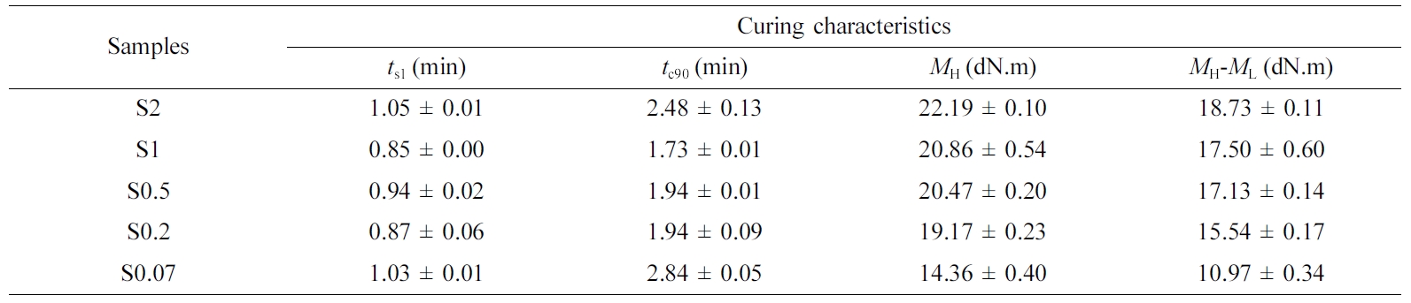 Table 2 Cure Characteristics at 160 °C of the NR Compounds with Varied S/Acc Ratios |