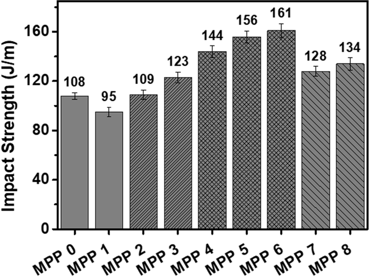 MPP4, MPP5, MPP6 만큼의 충격강도는 얻지 못하였지만, TMPTMA를 단독 개질제로 사용한 MPP2와 MPP3 보다는 더 우수한 충격강도를 보였다. 특히,