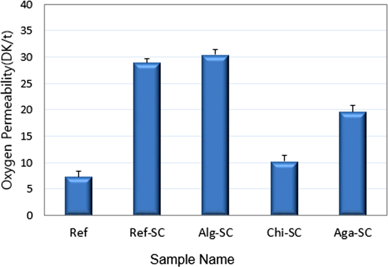 모든 다공성 콘택트렌즈에서 습윤성과 항균성을 향상시켰다. 콘택트렌즈의 단백질 흡착은 다당류의 이온성에 영향을 받았다. 이온성 천연다당류가 수화젤 콘택트렌즈에 결합됨으로써 콘택트렌즈의 기능향상에 기여함을 확인하였다.