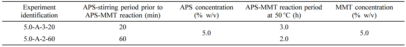 캡슐 특성’에서 전술된 “5.0-A-3-20과 5.0-A-2-60의 조건에서는 실란화 반응시간이 APS 실란화 반응 전의 용해시간보다 APS의 Na-MMT 층간침투에 있어서