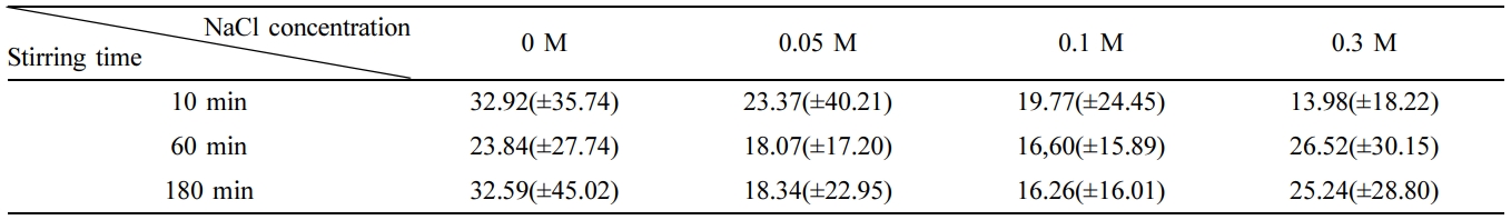Table 3 Size Distribution of Aggregated Na-MMT Stirred for Various Time at 200 rpm in 80% Ethanol-aqueous Solution Added