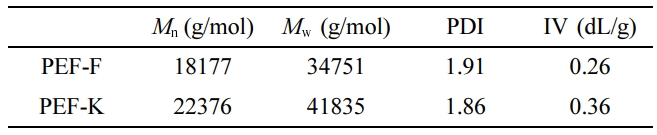 Molecular Weight by GPC and IV of PEF-F and PEF-K