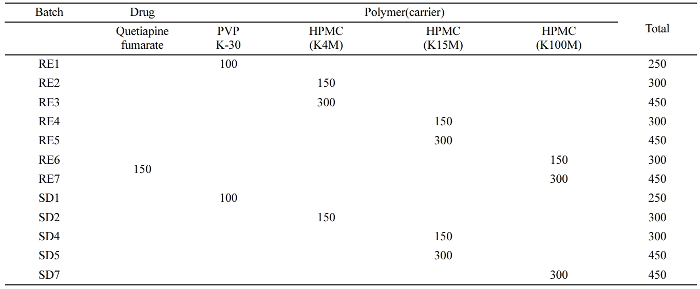 Table 1 Formulation of Quetiapine Fumarate (QF) with Polymer Using Spray Dryer (SD) and Rotary Evaporator (RE)