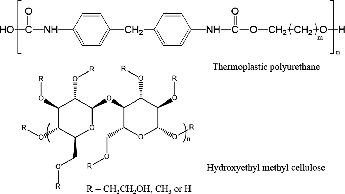 Structure diagram of thermoplastic polyurethane and hydroxyethyl methyl cellulose.