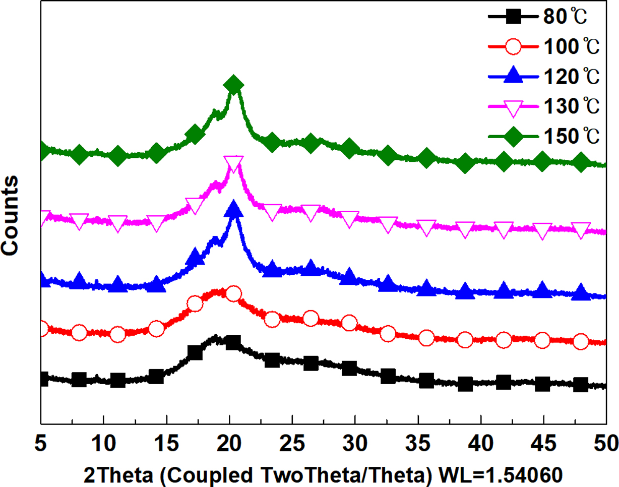80 oC에서 120 oC까지 영역에서는 큰 폭의 결정화도 변화를 보였으며