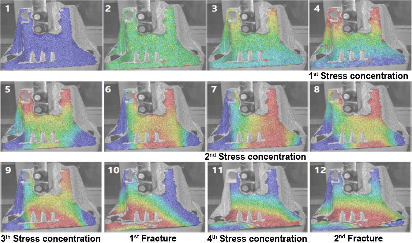 Figure 8 DIC images of bracket during static strength test. |