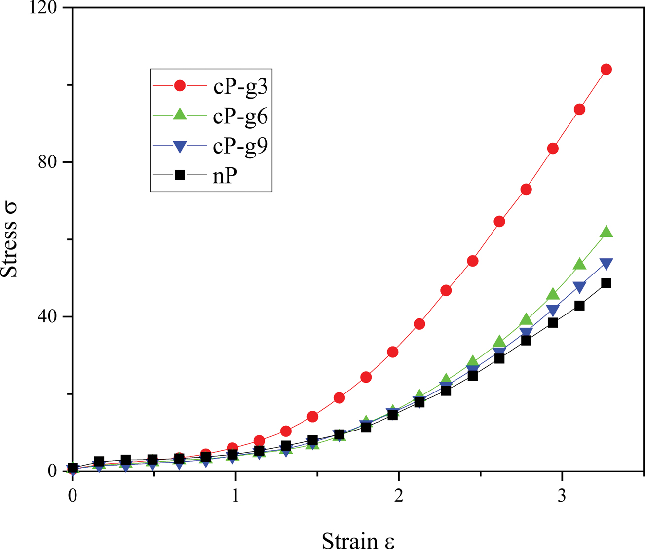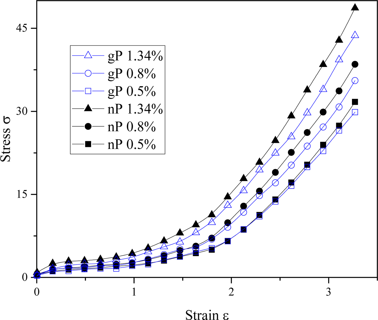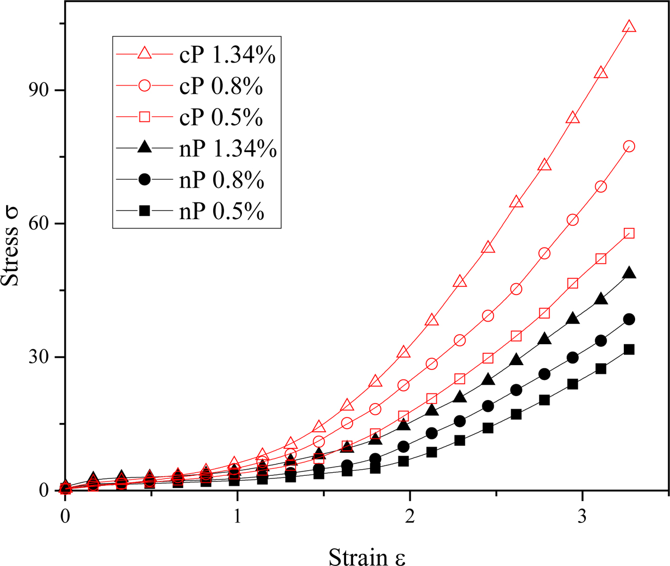 curves of polymer composites. The stress σ is calculated as the same with that