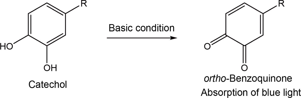 catechol 화합물들은 염기 수용액 조건하에서, ortho-benzoquinone으로 산화가 일어나는 것으로 알려져 있다(Figure