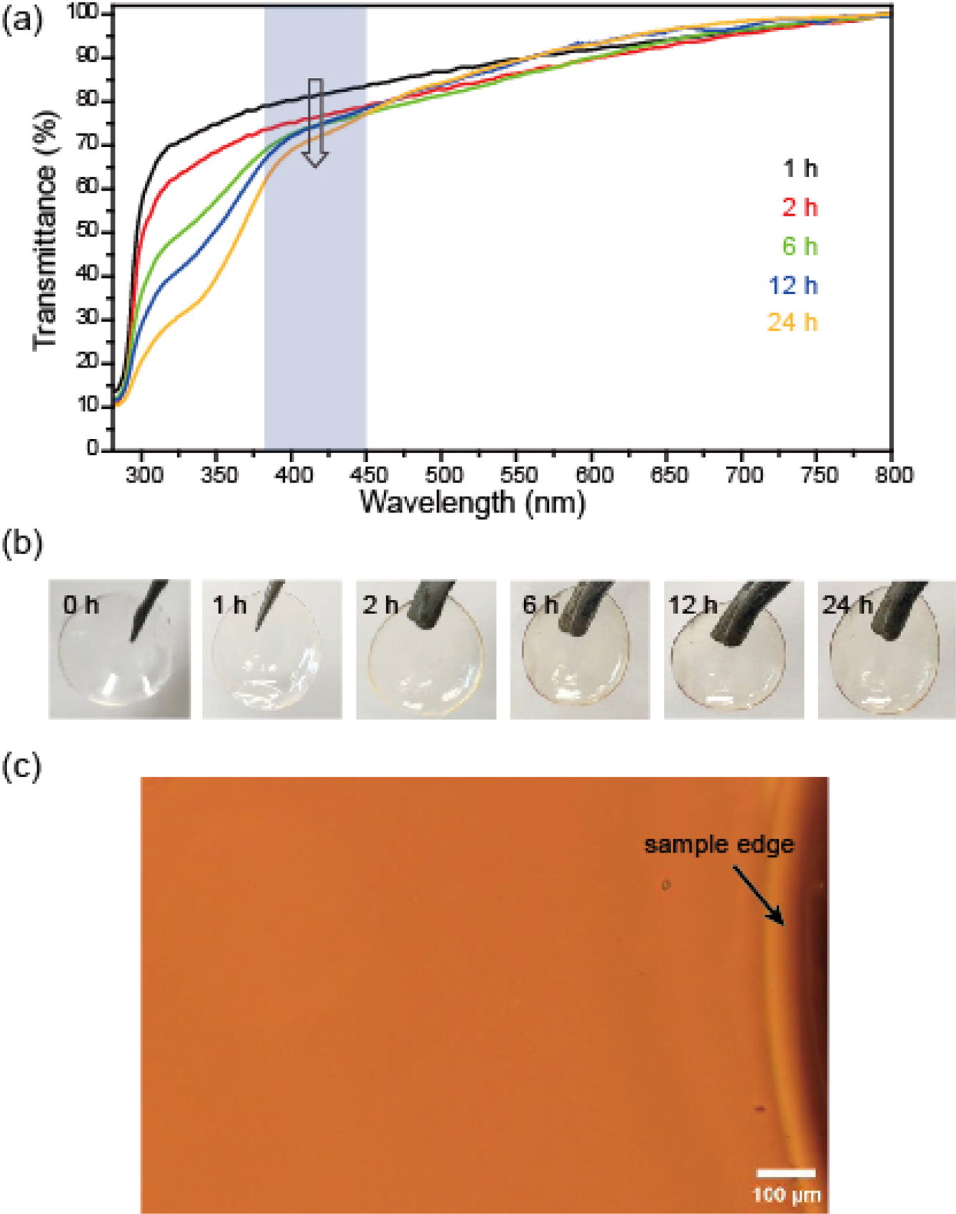 Figure 3(a)은 1.0%-BB lens 제조 시, 산화 시간에 따른 투과 스펙트럼을 조사한 결과이다.