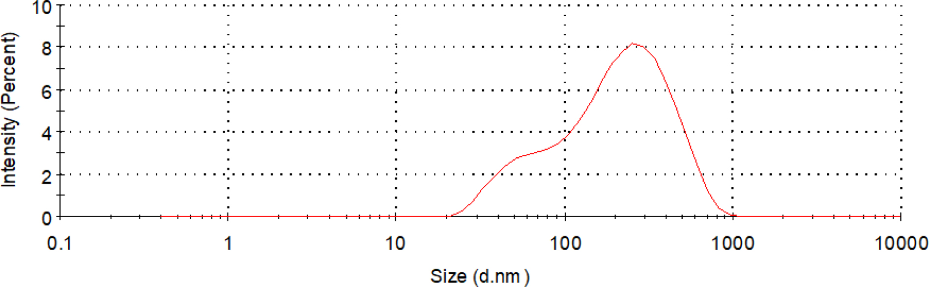 Figure 8 Particle size and distribution of CWPU emulsion. |
