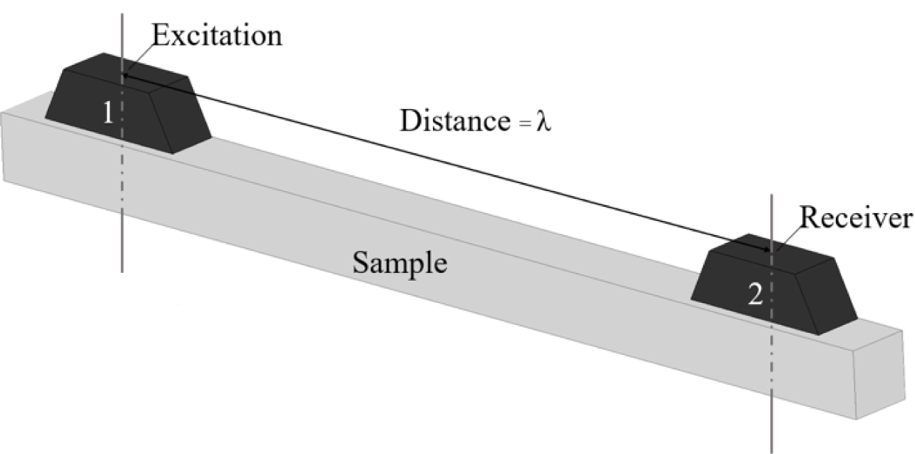 The propagation time is displayed on the device’s screen in microseconds. From the ultrasound’s propagation time between the transmitter and receiver, the propagation speed can be determined by the following eq. (1):22
