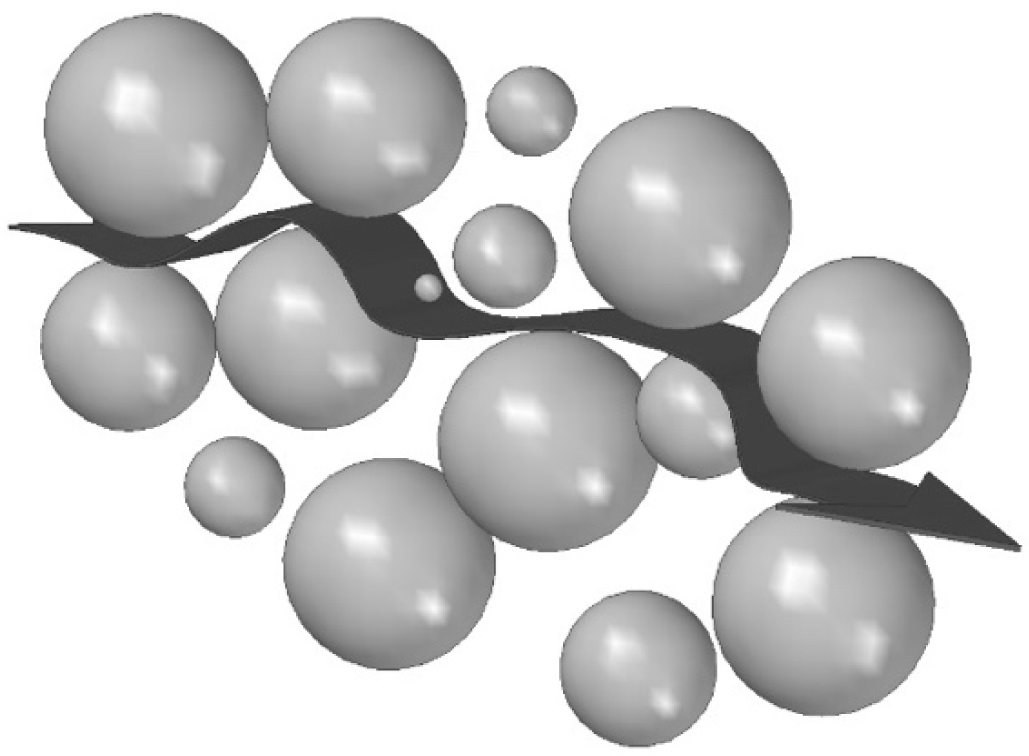 Figure 4 Ultrasonic wave propagation in the foamed samples (the spheres represent the cavities). |